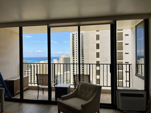 Wondeful and Renovated 1 Bedroom /1 Bathroom /1 Free Parking unit located on the 27th floor of the Waikiki Banyan. Amazing partial Ocean Views from the lanai and bedroom!