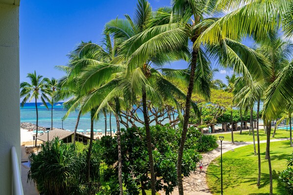 – Access to private enclosed lanai with gorgeous park and partial ocean views (plus seating/dining for 2)