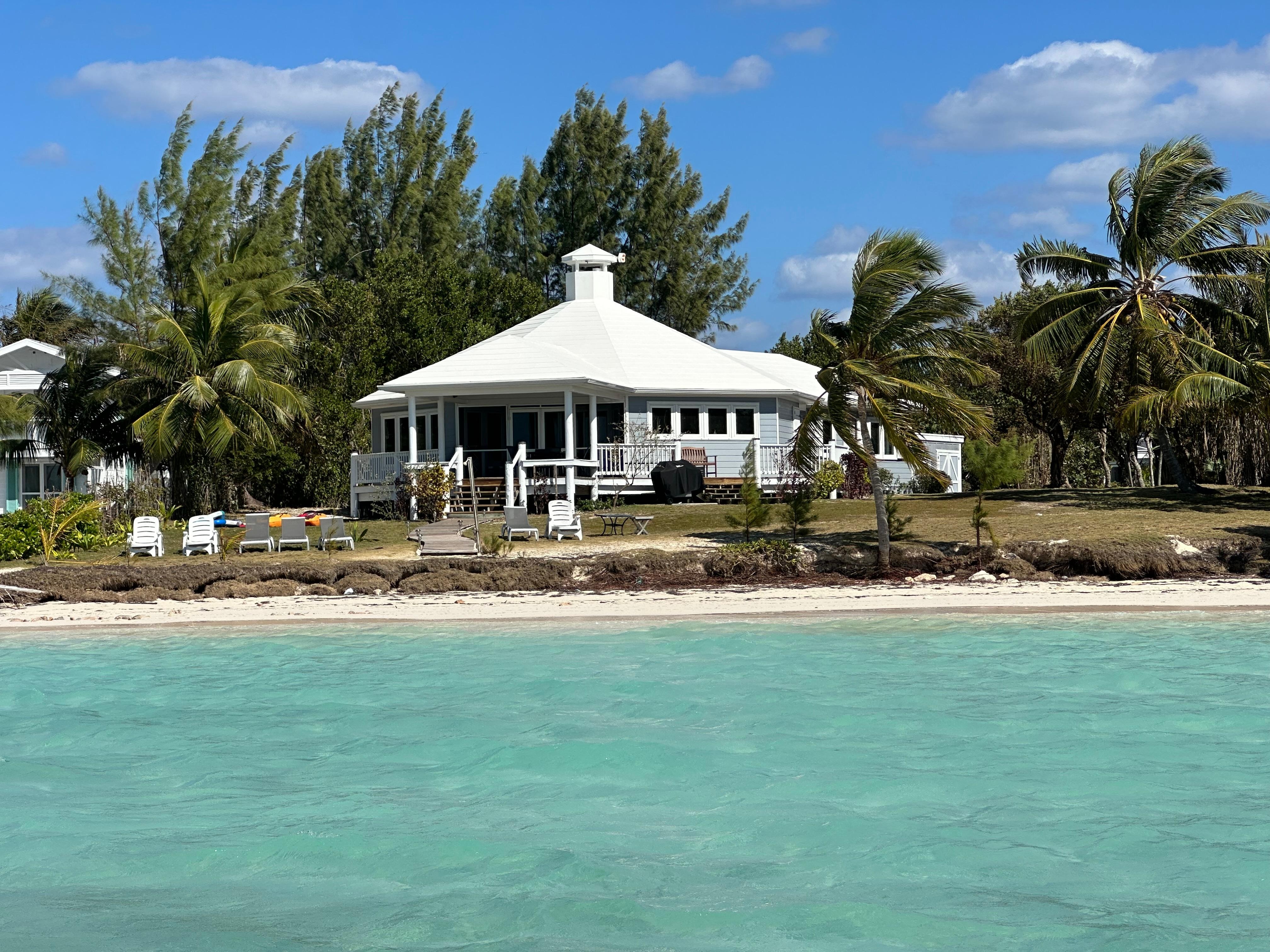 This renovated home sits on possibly the most ideal homesite on the island: An actual beach-front house, level lot, sunset view, on the calm side, perfect soft sand, crystal clear swimming waters, good privacy, and right at the top end of Hope Town. Brand new air conditioner, new chef's kitchen, open-concept, and new back-up whole-house generator, all newly renovated bedrooms, new flooring throughout (not in the pictures yet!), new stainless steel appliances including a second mini fridge (comes in quite handy for bigger groups!), and new clothes washer and dryer. Master bedroom with a king bed, guest bedroom with a queen bed, and a 3rd bedroom which has two full-size beds in a bunk (adult size), and a twin bed (thus sleeps 4 in that room), and a pull out queen size bed in the main room. 2-minute walk from the North-End Public dock ferry drop-off, free boat docking 80 meters from the house at a newly built dock, and a short bike, boat, or rental golf cart to Hope Town and the restaurants, and yes you can cart through town now and south to the rest of the island's attractions as well (we have a town gate pass for you so you can access everything). It's only a 15 minute ferry or boat ride over to the dock from the mainland, which is only a 5 minute cab from MHH international airport! Great snorkeling right off the beach, especially around the reefs at the north tip. Some renters have even caught bonefish right in front of the house after seeing them swimming by from the deck! We usually have at least 1 or 2 kayaks, some floaties, a paddleboard, etc., although sometimes they are broken or go missing and it takes a bit to order new ones in from the US. We have a great relationship with the cart rental company, so they will drop off carts right at the ferry or boat dock for you, or at the house if you prefer. We also give you a full info guide, custom-curated by us, for most of the great things around the island, best practices at the house, and lots of other good info, and we email this to you well in advance of your trip so you can plan out all the best things! For restaurants, there are many amazing spots just a short cart or boat ride away including Captain Jack's, Firefly, Abaco Inn, Hope Town Inn & Marina, On Da Beach, Mackey's, Golden Kitchen, and more coming soon! However, keep in mind that one of the nicest meals you will have is BBQing looking over the beach and sea, and for that, there's a huge grocery store in Marsh Harbour near where you land (usually a great spot for a first big shop before you come across), and a small grocery store right in Hope Town. For high season (May to August) please try and book at least 6 consecutive nights; however, if you want to stay less, just inquire here and let me know what you're looking for and I will do my best to make it work! There is a reason this is not only the most rated, but also the highest rated rental house in all of Hope Town and Elbow Cay!