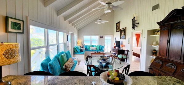 Mellow Yellow did NOT disappoint, from the very 1st message to Melinda the Owner and her communication back and for and answering tons of questions, making sure we would be okay and have all we needed, that what we were brining was good too, she was on Point! So arrival was here, getting to the gates of Mellow Yellow and its cute and homey welcome feel, great yard, our golf carts were waiting as promised from the cart place, to the cleaning lady was also, there to greet us, she was so kind & make sure we were okay, house was adorable and comfy to fit 10 of us with an upstairs, downstairs (they are not connected) you walk up a deck to get to each other) but this worked amazing to put part of the kids etc. downstairs that was our cooking quarters too. All we brought all we needed to cook daily food wise! All accommodations from towels, coffee makers, plates, cups, and more were there. Okay, back to the upstairs the view and the deck make the whole house, we lived on the back deck when we were all there, from Morning coffee, to Yoga, evening cocktails and a couple slept on deck 1 night, out there is spectacular and a walk down the stairs to the Ocean, washer and drying to do laundry, beds all comfy, AC works great, such a convent location to all from the Firefly restaurant, to our dock, to Hope Town (5min cart) , Location perfect. I will stop here or may run out of space lol. See you again Mellow Yellow! Ps. Milo my service dog so enjoyed he, befriended the whole island.