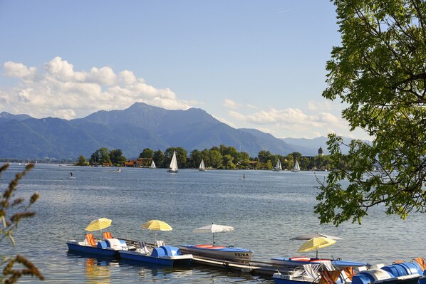 Utkanten med fjellutsikt og nær skogen, 5 minutters kjøretur til det termiske badet og bare 3 minutters kjøretur til nærmeste golfbane (18 hull). Et ideelt utgangspunkt for fotturer og sykkelturer i området (et av de eldste naturreservatene i Bayern), eller besøk våre Chiemgau-spa. Det er mange fritidsaktiviteter eller festivalen Immling med sine årlige operaforestillinger. Baden, seiler eller surfer på de kanskje vakreste naturlige innsjøene i Bayern, z. B: Simssee, Chiemsee eller en innsjø i Chiemgau Lake District. Nyt fjellene på nært hold og bruk muligheten til å lære mye om gruveindustrien på guidede fotturer. Ta en avstikker til Wasserburg (det lille Venezia i Bayern), eller til Rosenheim på en shoppingtur.