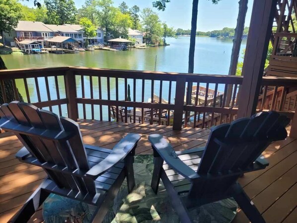 Du kan se vakre Lake DeSoto fra enten den nye øvre eller nedre dekk. Denne enheten tilbyr 3 TV, video / DVD, trådløs internettilgang, utvidet kabel service og grill. Send bilder til familie og venner fra vår nydelige 2 nivå rekkehus, 3 soverom, 2 bad hjemme ligger på Lake DeSoto. Nyt dag-fiske, svømme og slappe av på dekk mens du ser solnedgangen på sjøen. Innsjøen er hjem for gjess, ender og dusinvis av innfødte fugler. Seks gjester vil være veldig komfortable med overnatting med 1 King, 1 Queen, 2 enkeltsenger. Denne rekkehus, kommer med full størrelse vaskemaskin og tørketrommel, rekkevidde komfyr, mikrobølgeovn, full størrelse kjøleskap, oppvaskmaskin, kokekar gryter og panner, kaffetrakter, masse kjøkkenutstyr å lage så mye (eller så lite) som du vil. Også håndklær og sengetøy, faktisk omtrent alt du kan trenge for hele den amerikanske drømmeferien.