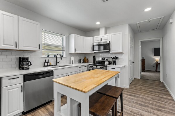• Whip up delicious meals in the fully equipped kitchen with stainless steel appliances, island seating, and other amenities.