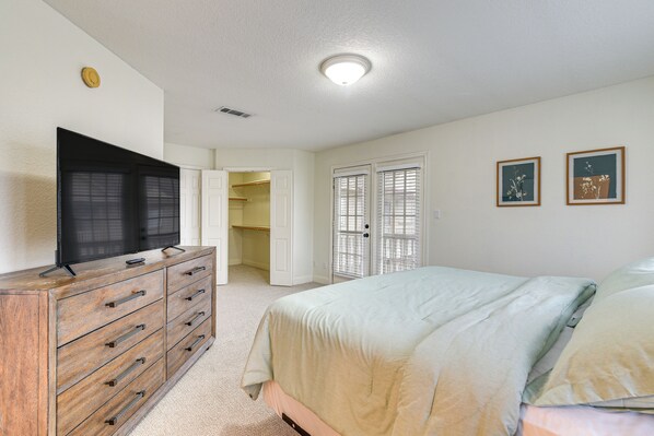 Gjesterommene ved Downtown Kemah Rental ~ 3 Blocks to Boardwalk! har aircondition. Rommene har balkong. Gjesterommene ved denne leiligheten med 3 stjerner har kjøkken med komfyrtopp, mikrobølgeovn, gryter og panner/tallerkner/kjøkkenutstyr og oppvaskmaskin. Badene har badekar eller dusj.