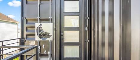 Modern one bedroom container-style guest house with full kitchen, dog friendly