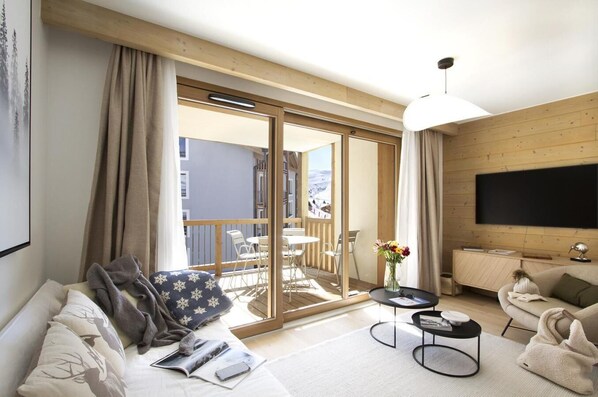 Ski-in/ski-out & foot of the slopes, swimming pool, terrace, parking, tv, ski locker, 43m²