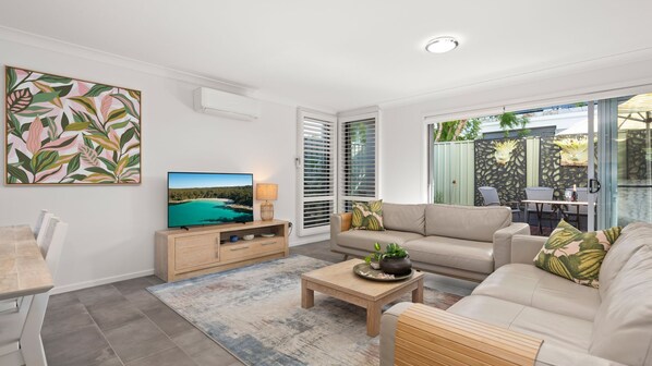 - Bed 1: Queen bed, ensuite, reverse cycle air-conditioning, ceiling fan and built-in wardrobe
