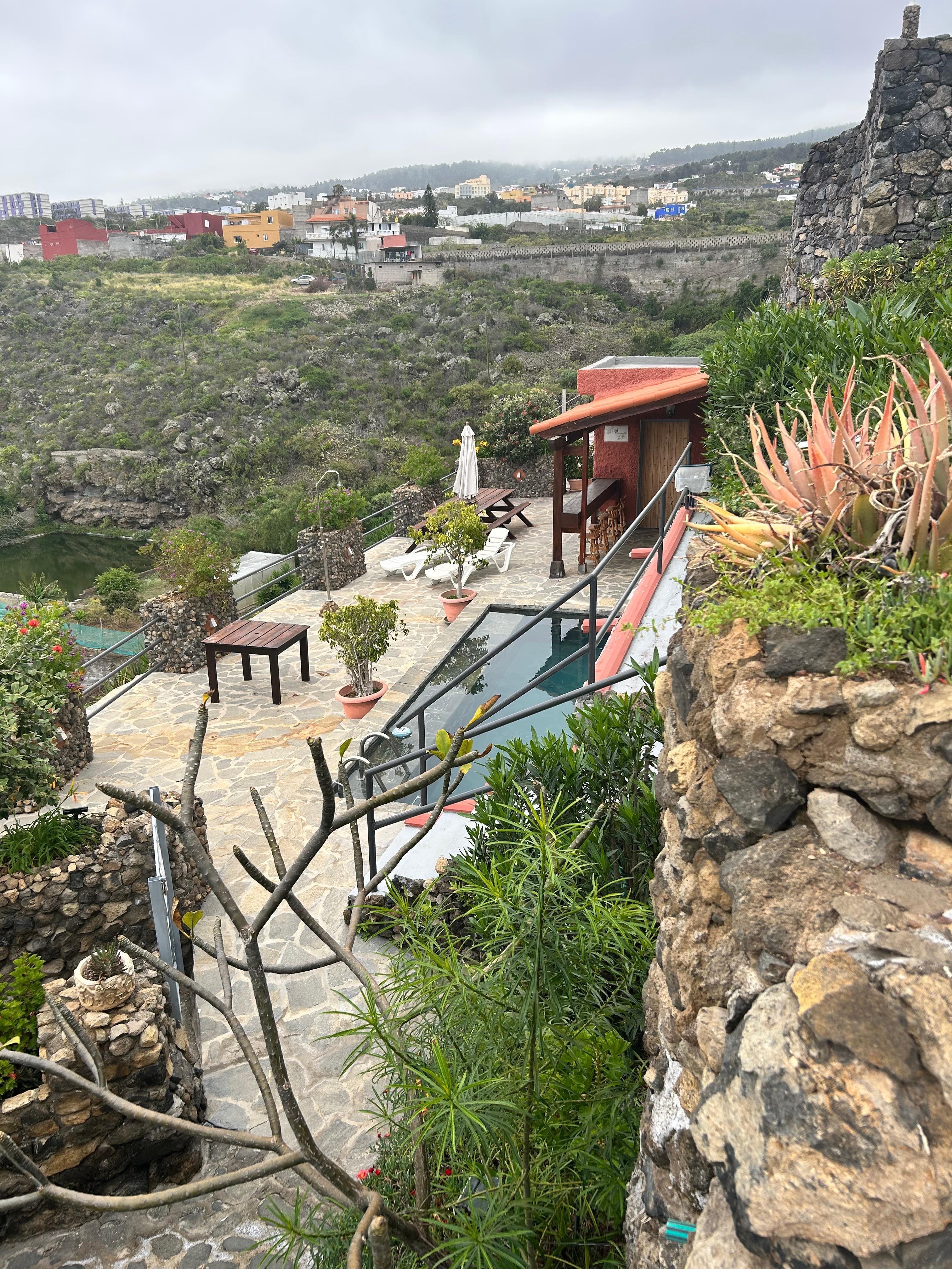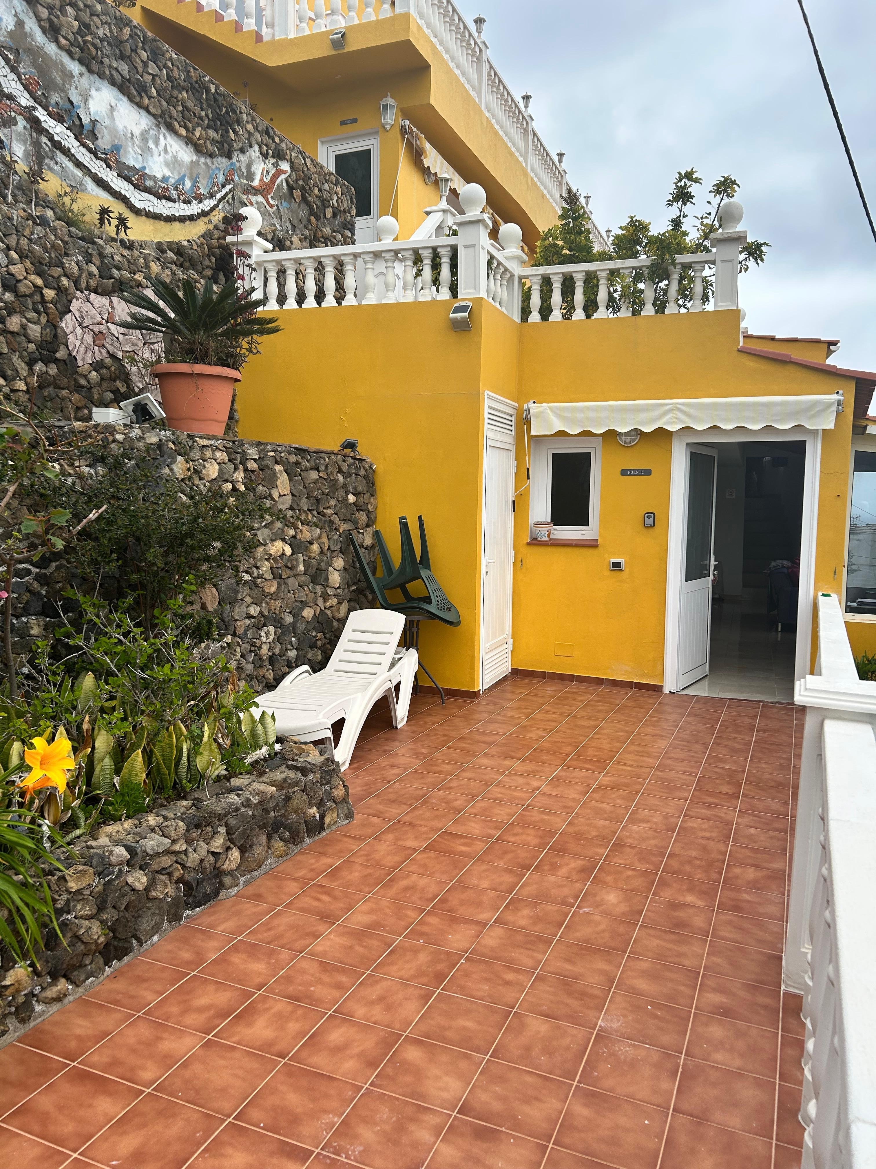Denne fredelige omgivelsen, som er bygget på siden av en kløft med fantastisk uforstyrret utsikt over kysten og Mount Teide, tilbyr det perfekte stedet for en avslappende ferie. De tre leilighetene er separate og har egne private terrasser og hager med fantastisk utsikt. Det er en egen terrasse med basseng og peisovn, grill, kjøkken og bar hvor du kan slappe av og dele fasilitetene med andre gjester. Det er vakre hager med fontener og blomster, og alle leilighetene har utsikt over vår egen vingård og den nærliggende bananplantasjen.