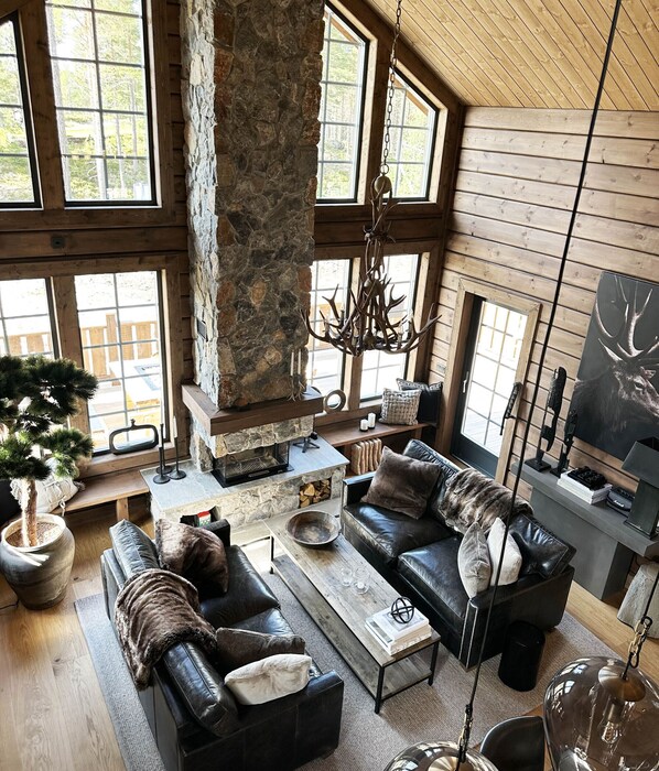 Varglyan is located on the mountain side in a south-west position with extensive views over the golf course and mountain peaks. Here you can enjoy the large living room's sofa in front of the fireplace, with 6-meter ceiling height and panoramic windows. The spacious cabin has a well thought out floor plan. The large social areas are perfect for the large family, group of friends or two or three families that can fit without problems. After dinner, the adults hang out in front of the fire while the children/young adults watch movies and play games upstairs.
