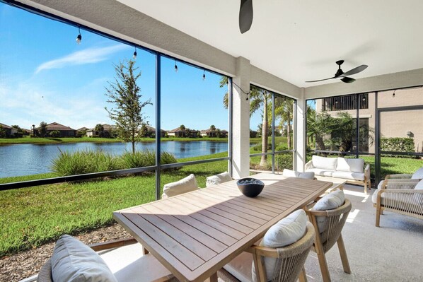 Offering a bundled golf membership, this residence is a perfect blend of comfort, style, and privacy. Thoughtfully designed for both everyday living and effortless entertaining, the open-concept layout features a spacious great room, elegant dining area, and a chefs kitchen with an oversized island, walk-in pantry, and high-end finishes throughout. Three generously sized bedrooms are split for ideal privacy, making it perfect for hosting guests. Step out onto the expansive screened lanai to enjoy serene lake views your private retreat awaits. This home offers a two-car garage with an additional bump-out for golf cart parking or extra storage. As a guest, you`ll enjoy a full golf membership granting access to resort-style amenities including an 18-hole championship golf course, luxurious pool with poolside bar and grill, elegant clubhouse with private dining, a full-service restaurant, and a stylish bar. For an active lifestyle, the community also offers tennis, pickleball, bocce ball, a state-of-the-art fitness center, sauna, and a full-service spa. Located within the vibrant and self-sustaining town of Ave Maria, you`ll find everything you need just moments away including a Publix grocery store, boutique shopping, diverse dining options, beautiful parks, scenic walking trails, and even a water park. The National at Ave Maria ~ Once you get here, you get it .