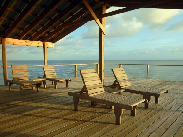 Den store to-etasjers private dock gjør det enkelt å snorkle det pulserende korallrevet ut foran, og øvre dekk er perfekt for å sole deg, stirre, lese eller feire! Nyt avkjølende bris og utrolig utsikt når du ser på korallreven nedenfor eller nyt solnedganger over cays.