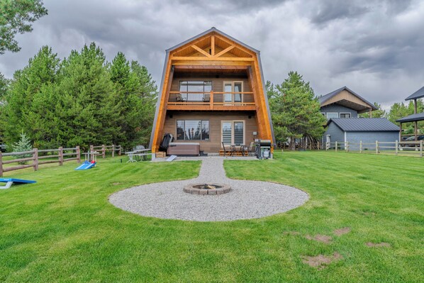 Dekket og store verftet lar deg nyte den friske fjelluften mens grilling og steking myr Mellows over ildstedet.