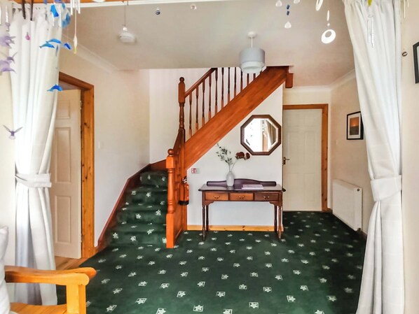 Maari is a lovely detached house with three bedrooms - one double en-suite on the ground floor and a further double and twin room on the first floor. The family bathroom is also on the ground floor together with a toilet situated at the back door, too. The living room has a wood burner for you to enjoy at the end of a busy day, and the kitchen is well-equipped, and also has a dining table. Parking for three cars is available at the back of the house and the gardens are enclosed.