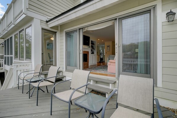 43 Fairway Dunes on the Isle of Palms is perfect for getting away from it all with family and friends in search of a vacation that will make everyone happy. Located only two blocks from the beach, the newly renovated home features three bedrooms and three full baths with both golf and pool views. The large back deck provides the perfect place to spend the late afternoon, watching golfers on the famous Links Golf Course do their best to score a birdie. Outdoor living can also be found on two elevated decks each furnished with comfortable seating. Sunrise to sunset, the outdoor areas at 43 Fairway Dunes are fantastic!