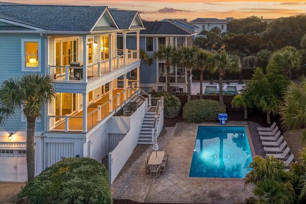 'Palm Manor' 917 Ocean Blvd, er et vakkert dekorert, 4500 kvadratmeter stort hjem med åtte soverom og åtte og et halvt bad, ideelt for familiegjenforeninger og store grupper. Gjestene vil sette pris på den ekstra uterommet med utendørs dekk og et privat basseng.