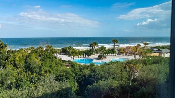 The condo was clean, furnished well, beds were comfortable and there were enough dishes to use for all 8 of us. The appliances were great. Everything we needed for pots and pans to make simple dinners each night. 2 smoothie makers! The coffeemaker is a Kuerig and large pot style combo so it accommodates pretty much everything. Great access to the pool and beach. We called for beach chairs and pool towels. That end of the island is quiet and very pleasant! There are a lot of walking/running/biking trails. We’ll go back for sure.