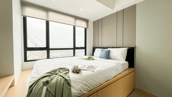 Gjesterommene ved denne leiligheten har aircondition.