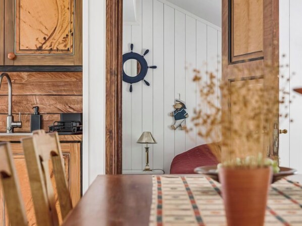 "Jennys", 2 rom hus 30 m2. Passer for 2 voksne + 1 barn. Lys, smakfullt møbler: stue/soverom med 1 seng (90 cm lengde 200 cm), TV. 1 rom med, 1 dobbeltseng (140 cm, lengde 200 cm). Åpent kjøkken (stekeovn, 4 induksjonskomfyr, brødrister, vannkoker, mikrobølgeovn, frys, elektrisk kaffemaskin). Dusj/WC. Oppvarming, gulvvarme. Tregulv, naturstengulv. Terrassemøbler, grill (flyttbar). Fasiliteter: vaskemaskin. Vennligst merk: røykfritt hus.