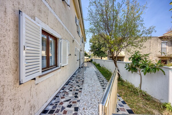Outside, the apartment offers a delightful shared garden and barbecue, a refreshing alfresco dining as well as a covered terrace that overlooks the clear waters of the Adriatic. Meanwhile inside, the one-bedroom apartment is equipped with all facilities and ensures a pleasant, fulfilling stay: set in cosy, air-conditioned interiors is an open-plan living room with a flat-screen TV and a full kitchen-diner for carefree homemade meals and dining in.