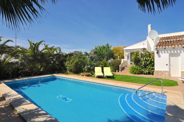 Med høyt løvverk rundt villaen kan skryte av Casa Tonica ypperlig privatliv og en fantastisk følelse av velvære. Svingende palmetrær prikker rundt eiendommen, sitrontrær er beleilig plassert for den aller viktige Gin og Tonic, et sommerkjøkken med murbygget BBQ og herlig naturlig pergola gir en skyggefull spiseplass mens du fortsatt nyter utsikten over bassenget - alt dette kan være din hvis du bestiller en uke eller to på Casa Tonica! I tillegg er det nok av å slappe av (eller varme ut!) områdene rundt villaen, inkludert to hevede terrasser - en med utsikt over det ikoniske Montgo-fjellet, den andre gir nydelig utsikt over bassenget og hagen. På siden av villaen er et gressletterområde - ideelt for badminton (medfølgende racketer), fotball - eller til og med boccier. Det er ytterligere uteplasser rundt villaen som gir sol hele dagen og hele kvelden. Og det nydelige bassengområdet og hovedterrassen er sørvendt, noe som hjelper deg å virkelig få mest mulig ut av solen dette området er velsignet med. La oss komme inn på bassenget ... et større basseng som er 9 x 4 enn gjennomsnittet, noe som vil være en sikker hit for hele familien. Hvorfor ikke prøve et svømmebasseng volleyball, eller slappe av i en oppblåsbar og suge solen? Villaen gir virkelig morsomme utendørs levende!