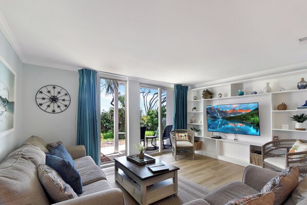 The villa is situated on 17 acres of lushly vegetated oceanfront property featuring over 1000 ft of coastline and a location immediately adjacent to world-famous Driftwood Beach. Enjoy a quiet villa location within 75 yards of the beach. Sounds of the surf can be enjoyed from your patio or the deck adjacent to the master bedroom.