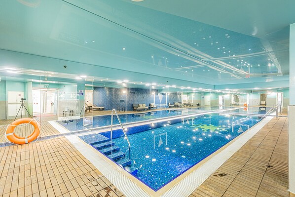 Leilighet med familievennlig profil og med treningssenter og innendørsbasseng
