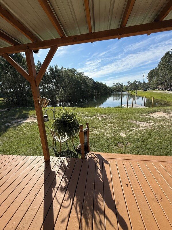 We enjoyed our stay very much at A Little Piece of Heaven, my grown children really enjoyed fishing in the pond. The kitchen is very spacious, and we liked using it, however there weren't any dish towels or cloths. there wasn't a grill, that would have been nice.also, a suggestion, it would be more pleasant to sit on porches if they had ceiling fans.