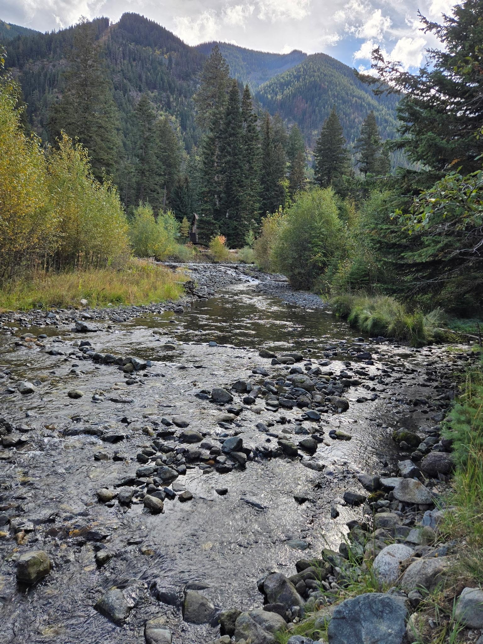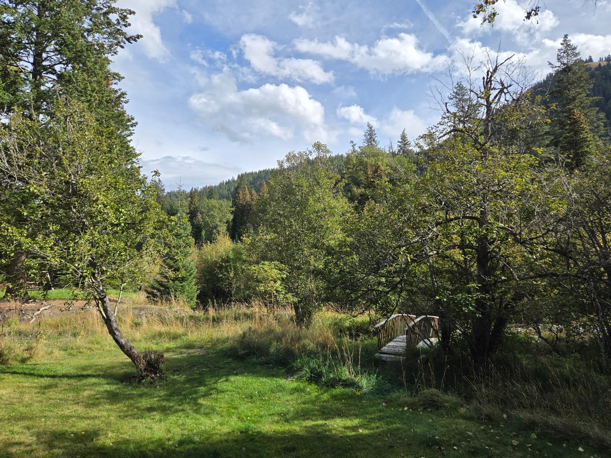 The bridge takes you to the Wallowa River.