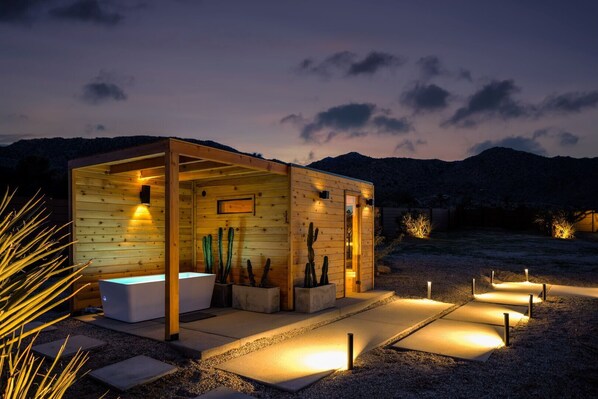 - Private outdoor baths in both homes