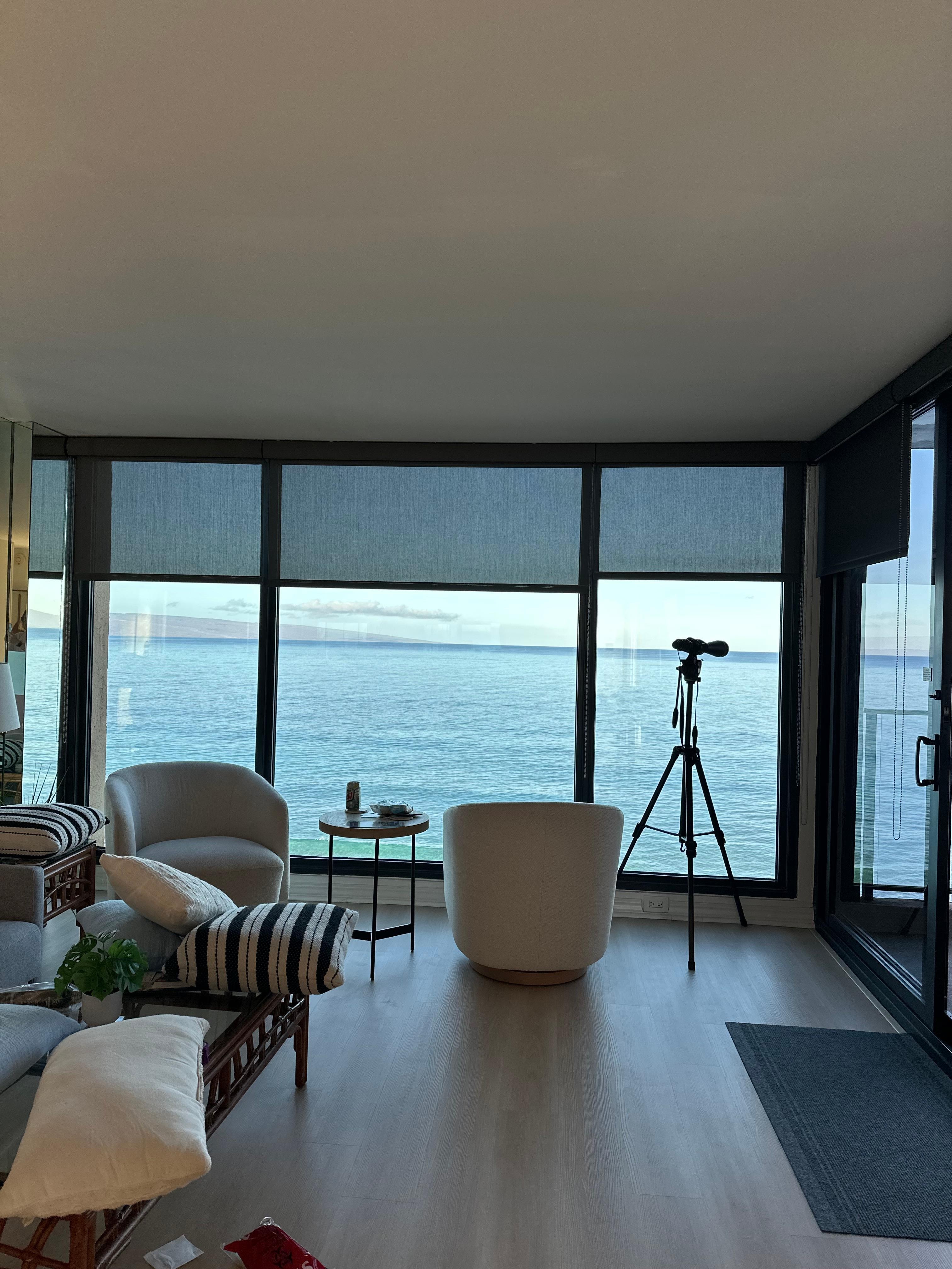 Escape to Oceanfront paradise at Mahana 1006, where you'll be treated to breathtaking, unobstructed views of the Pacific Ocean from the living area, bedroom, and private lanai. The villa is positioned perfectly to enjoy the sights of Molokai and lanai, as well as the vibrant marine life, including turtles and colorful reef fish. If visiting during whale season, you might even spot these majestic creatures right from your bed or lanai. The location provides not only stunning ocean views but also direct access to the beach for your ultimate relaxation.