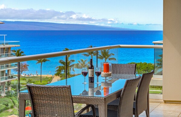Set in the serenity of the Hokulani Tower interior, Hokulani 645 boasts impressive ocean views from its prime 6th-floor location high above the palm trees that often obstruct views from the lower floors. The suite's expansive 200+ sq ft lanai also overlooks the lush interior courtyard and stunning resort pools while providing the perfect place to enjoy some of the most spectacular sunsets Maui has to offer.