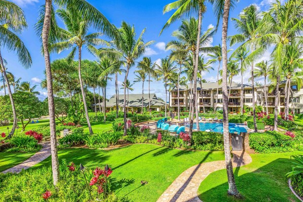 Beautiful property, very confortable and clean condo. The property had everything for everyone in our group to have a wonderful trip, from the family friendly beach out front (even when big waves were crashing on the outer reefs), to several bar and restaurant choices for the adults, to the walking trails and bike paths. All without being too over-the-top or too busy the way Waikiki can be. Loved it!