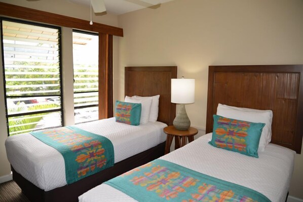 This was the third leg of our Hawaiian vacation, with my daughter's wedding on the beach being the final event. The condo and the grounds were great. Air conditioning would have made it perfect but the ceiling fans helped. The location was perfect, being right on Alii. Shopping and restaurants were close. We had the two bedroom unit, with laundry and good sized kitchen. We would definitely rent this one again.