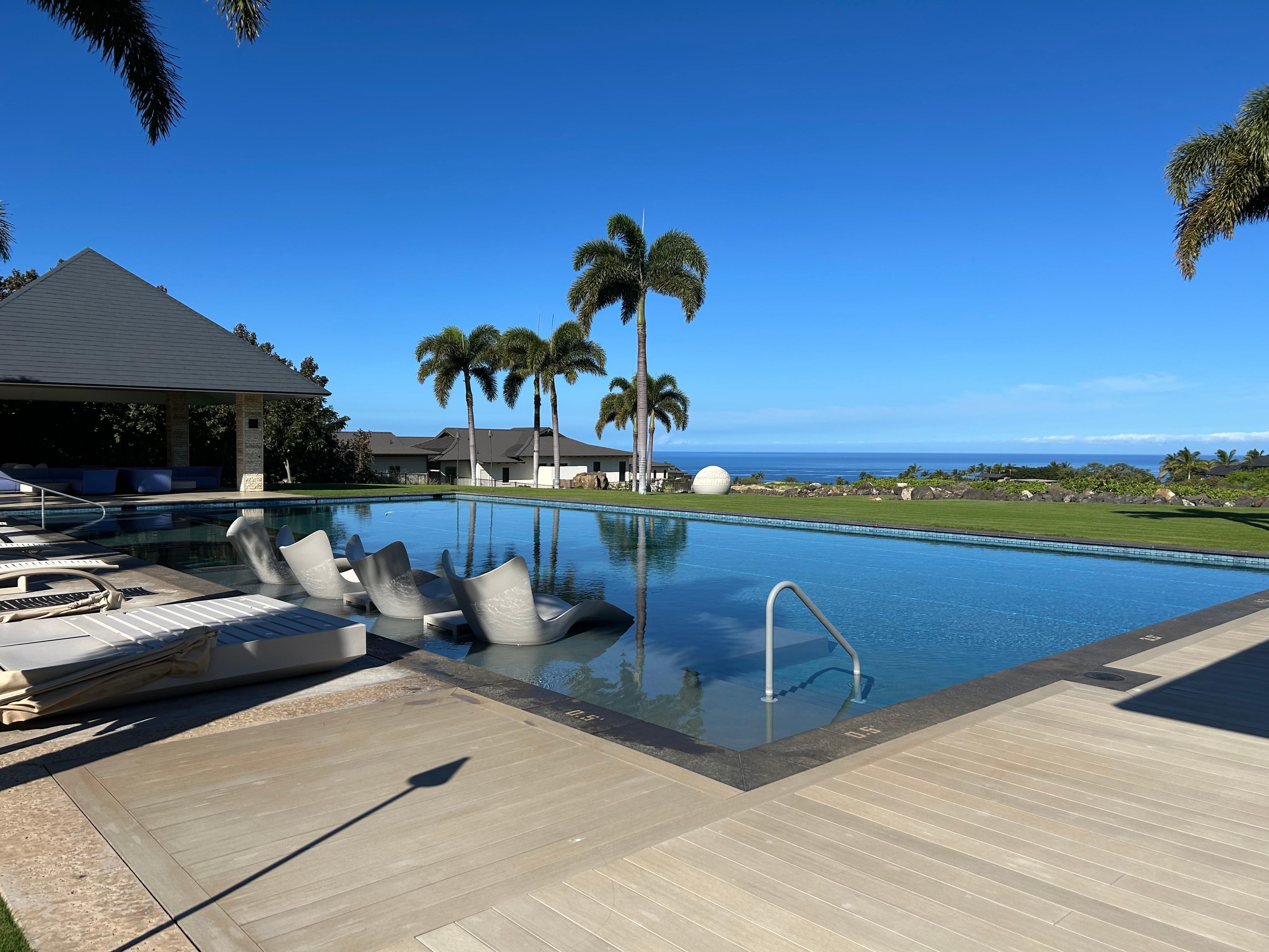 ✔ A lap pool & hot tub with cabanas