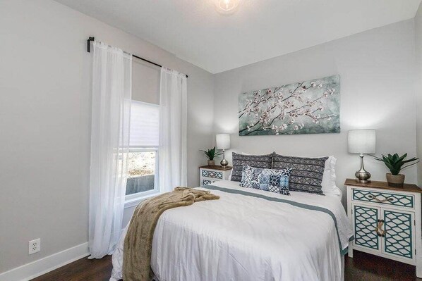 This is a very charming house with 3 bedrooms that were all comfortable. The linens were fresh and plentiful. The living area is small but the kitchen well appointed with new appliances and a huge refrigerator. There was good shopping for groceries and other needs nearby. It is located in a neighborhood that is turning and being comfortable in an urban area is necessary. We so enjoyed sitting on the front porch and enjoying beautiful weather in KC during our stay. There was a beautiful sunset the first evening we sat on the porch