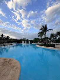 We never found an issue getting a lounger near the pool or in a prime spot on the beach. We never waited along for anything.
