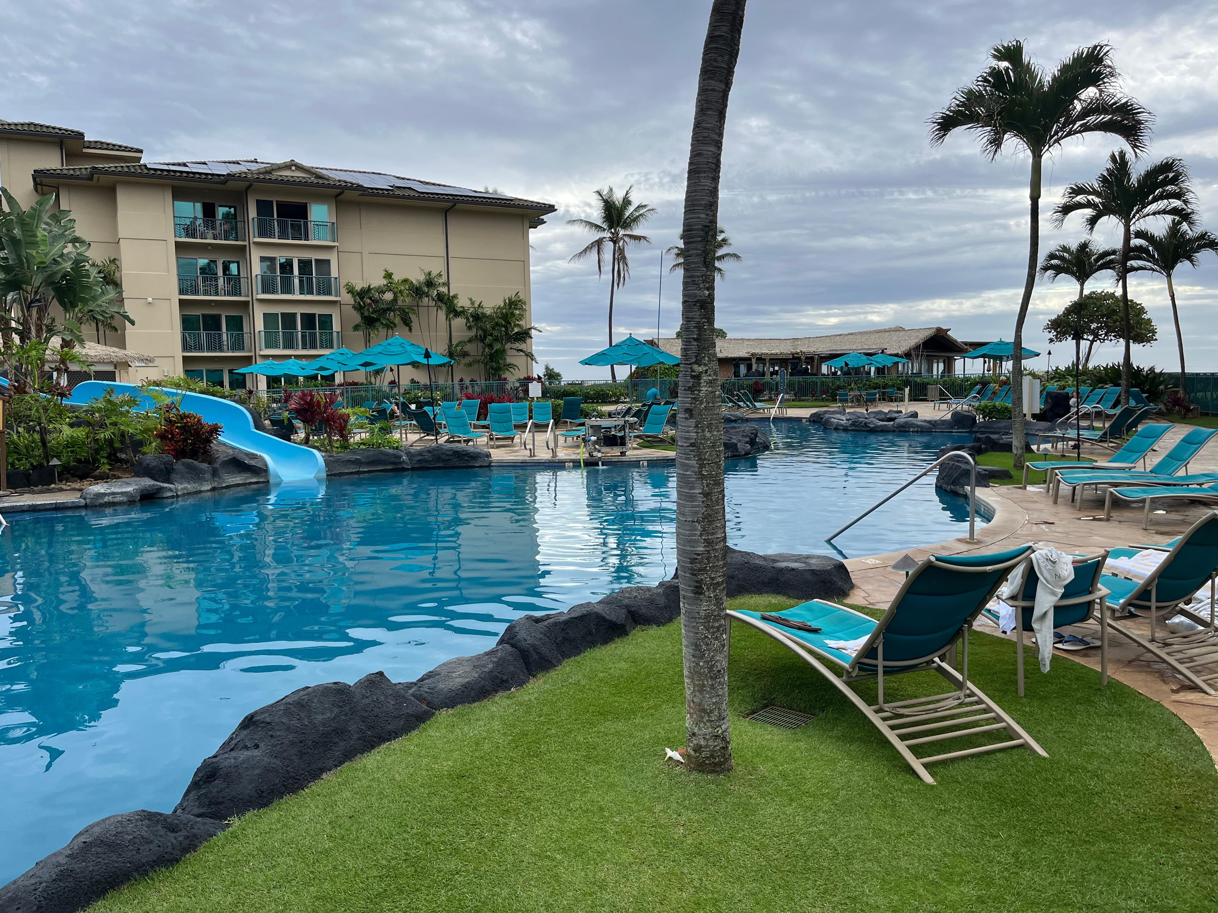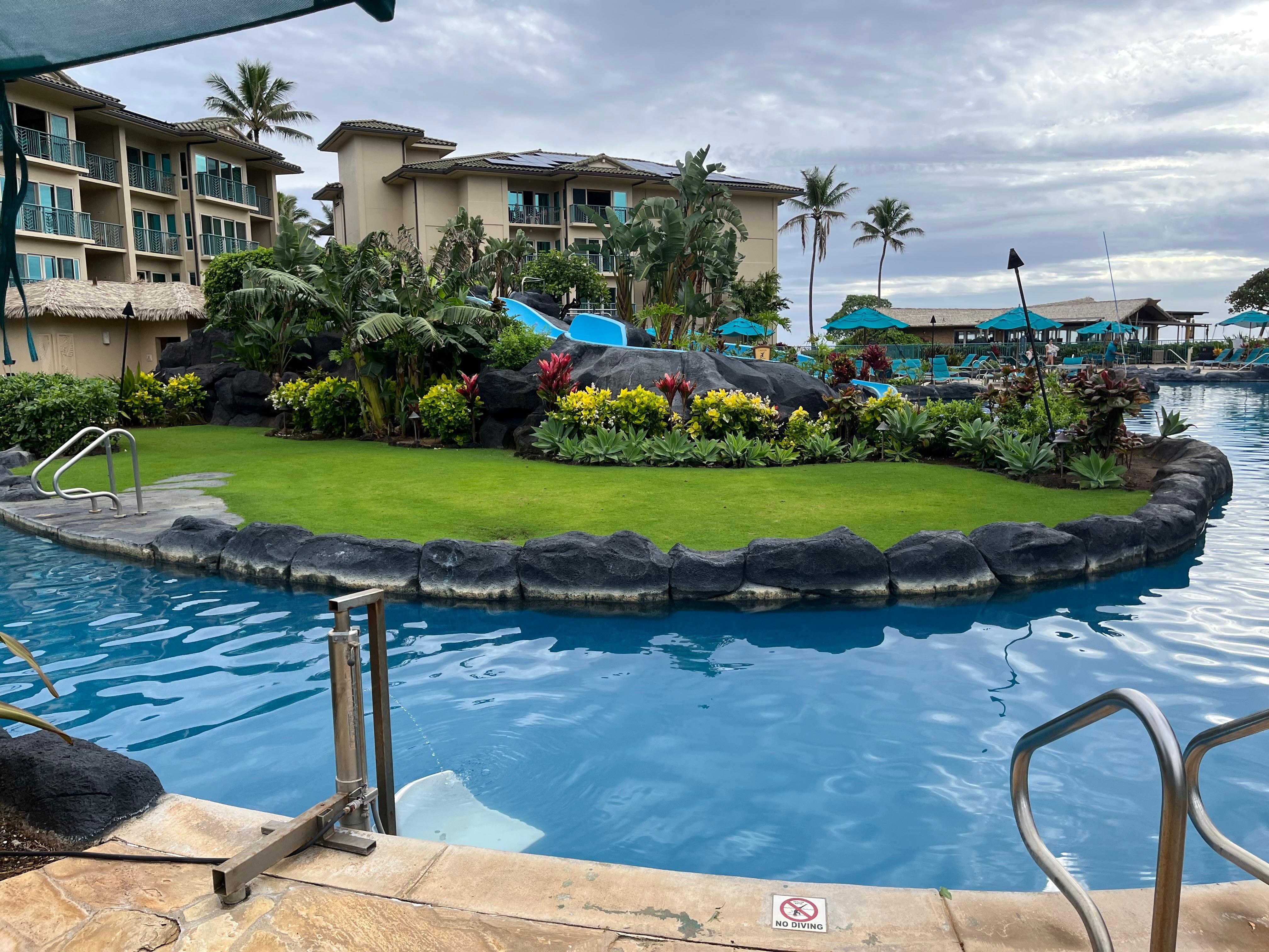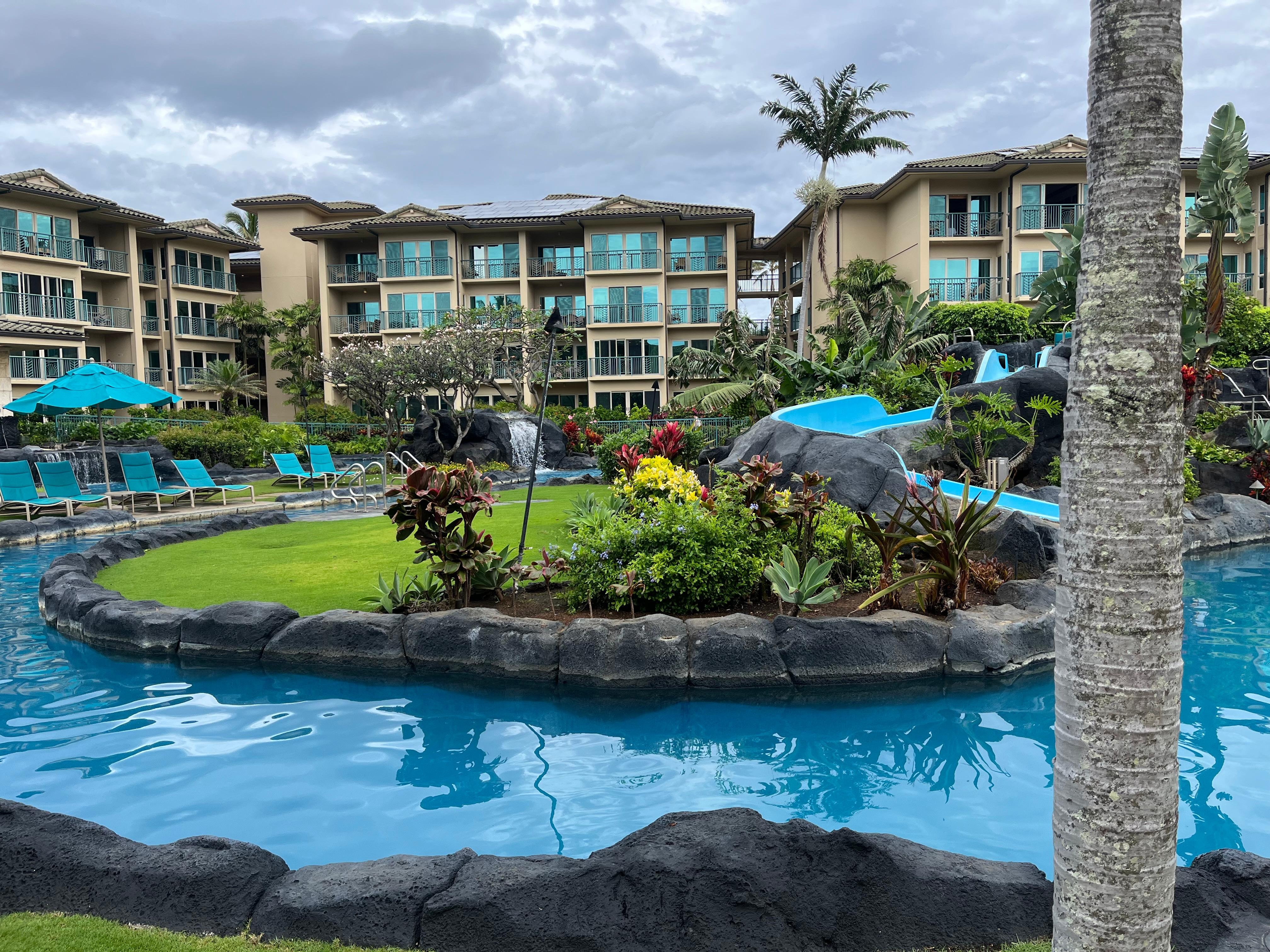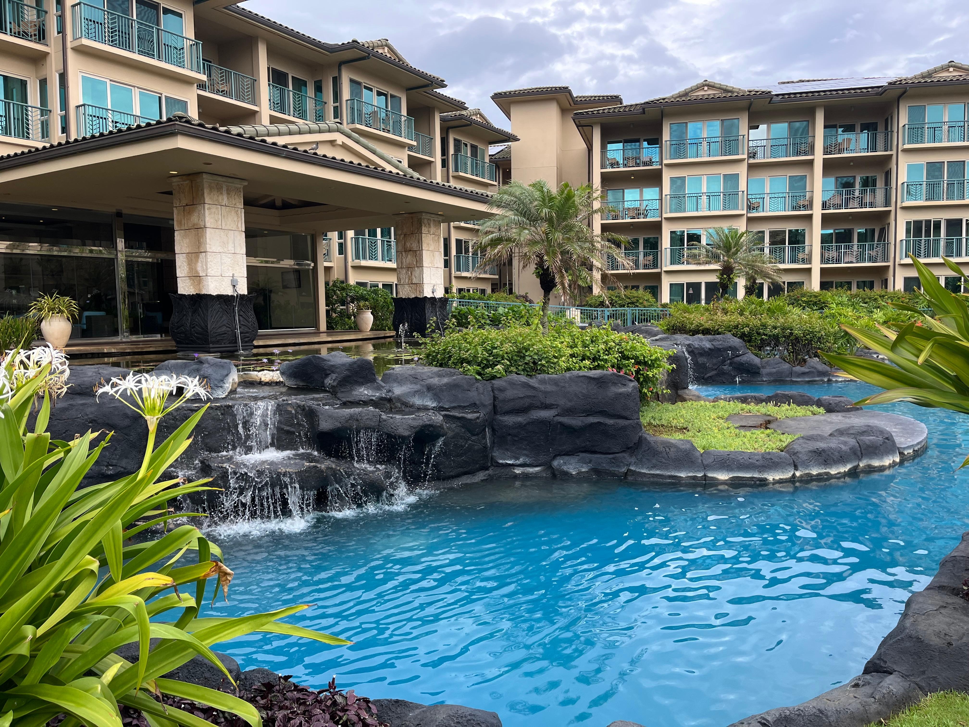 Denne suiten har en king size-seng, en queen size-seng og en sovesofa med queen size-seng, og har plass til 6 personer. Det stilige interiøret inkluderer et staselig kjøkken med en ovnglass-koketopp og stekeovn, Sub-Zero kjøleskap, GE-profil, mikrobølgeovn, benkeplater i granitt, afrikanske mahogni-skap, tre komplette bad med peruansk travertinsk stein omgir og badekar. Nyt det rene designet og den praktiske beliggenheten, med stranden og de ubegrensede Kauai-opplevelsene rett utenfor din private Lanai.