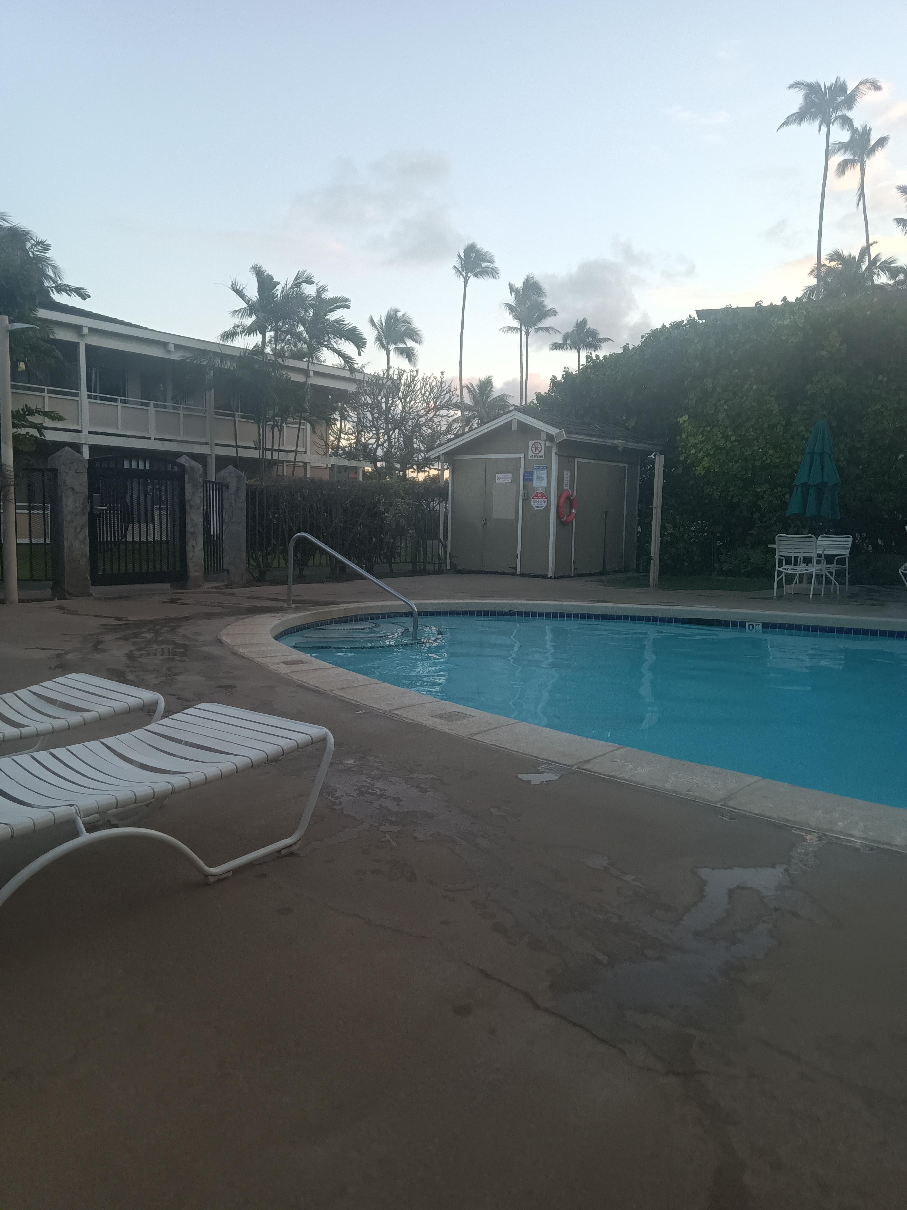 Condo is located close to Kuhio highway, lots of road noise. Checkin process is very confusing, no office staff onsite. Process was not communicated clearly at all. Both TVs/remotes did not work and there was nobody to call or come fix it. Pools are cold and hot tub way too hot. Room was spacious and clean.