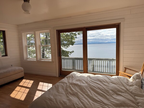 Wake up with breathtaking views of Vermont’s green mountains and lake Champlain. The second floor is quite private from the first and provides a bit of privacy from the first. This allows some to go to bed early and others to sleep in.