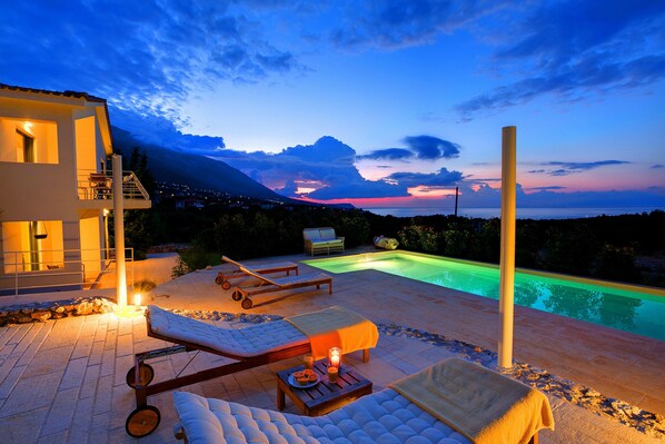 Here, far from all annoying noises, you will enjoy in your private villa the wonderful view of the Ionian Sea. The southern location of the villas captures an inspiring sunrise, whilst you can always indulge yourself to a romantic sunset.