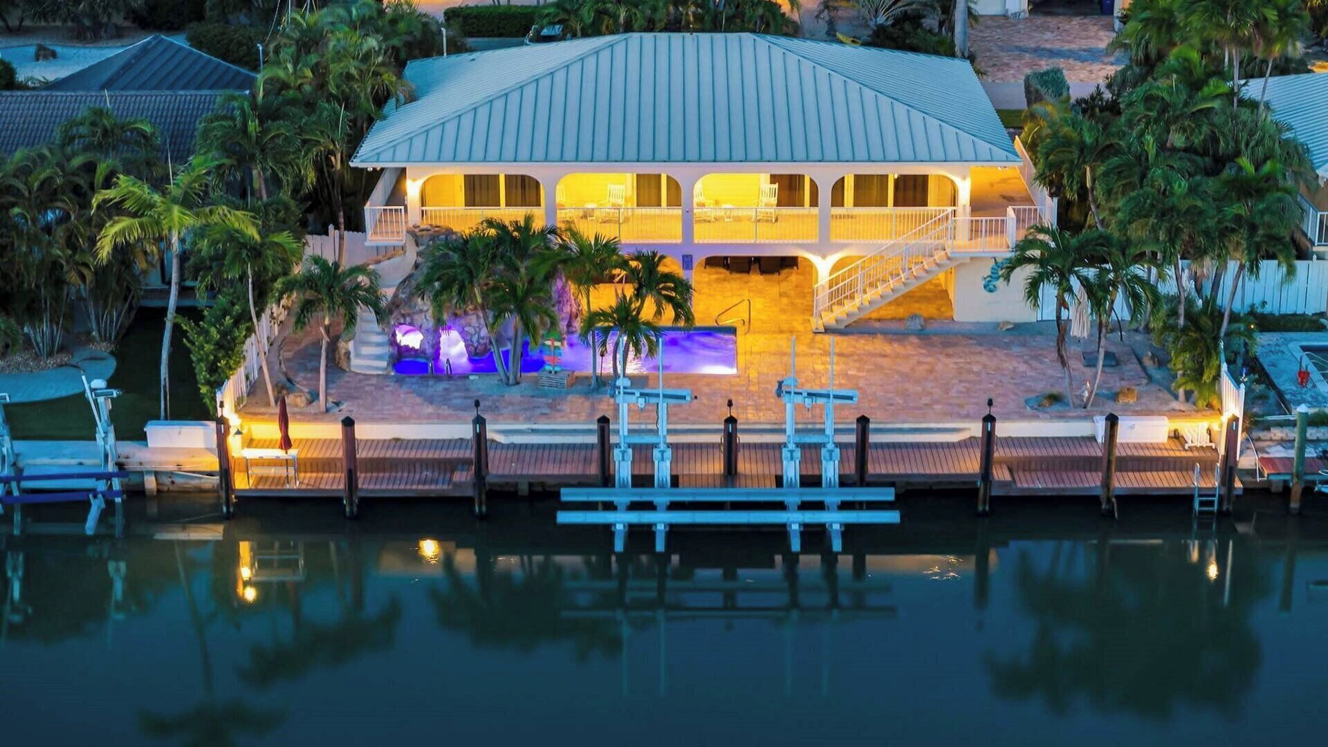 Welcome to the Key Colony Beach Palm Villa! This stunning 7 bedroom, 4 bathroom home is situated right on the canal, offering breathtaking water views. With 60ft of dockage, it's perfect for boat lovers!