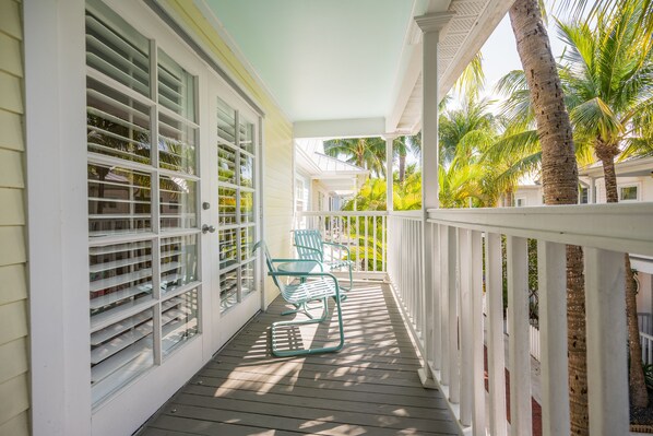 Enjoy an early morning cup of coffee on your private bedroom balcony after being gently woken by the crowing of a wild rooster. After a morning stroll, you are ready to enjoy an alfresco breakfast that was just created in your new kitchen. Sit back, relax, you are now on Key West time!