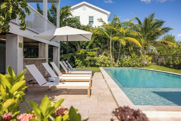 We had a large group of friends looking for a reasonably priced house to fit all of us. 11 in total. Anywhere on or near Duval St we're outrageously priced so when we came across this property, we thought it was too good to be true. Excellent price, in a gated community, less than a 10 minutes ride to all the nightlife of Key West. The pool was perfect for the sunny, midday hangout along w a private dock to fish off of. More than enough towels for everyone and 4 showers was enough where no one was caught waiting to clean up. House was very clean and the management company is extremely quick in their responses in any of our communications. Would definitely recommend this space.