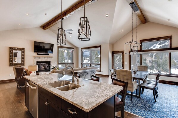 Leter du etter plass, komfort og bekvemmelighet for din neste skigang? Denne rekkehuset har alt! Over 2.104 kvadratmeter boareal, 3 soverom, 3. 5 bad, romslig stue, skioppbevaring, flatskjerm-TV overalt, private balkonger, moderne + fullt utstyrt kjøkken - hva mer trenger du ?! Nyt festlighetene og spenningen i River Run Village uten folkemengdene og støyen!