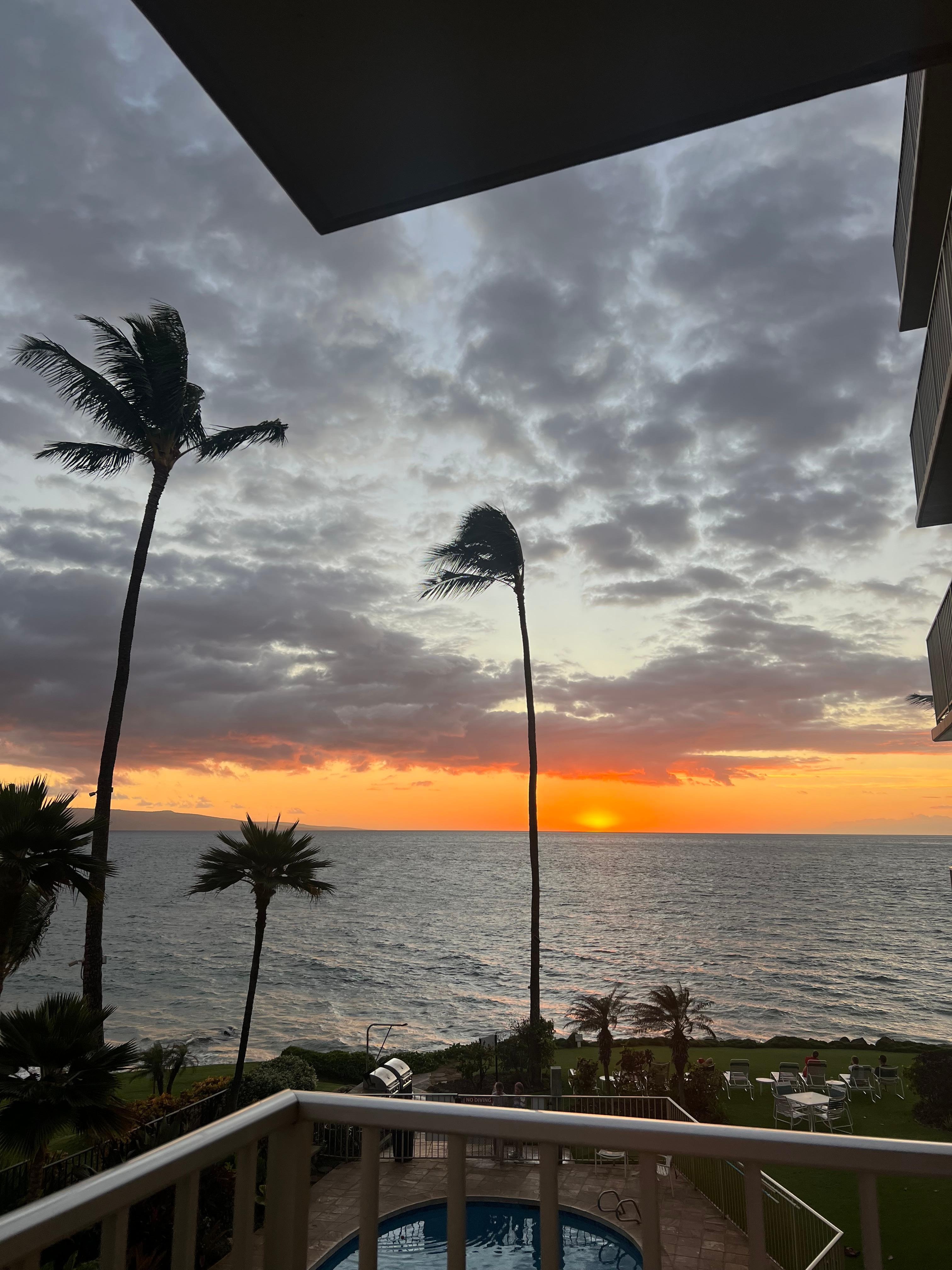 Our unit is on the 3rd floor of a six story oceanfront condominium building named Kamaole Nalu which is located in South Kihei. It offers beautiful views of the Pacific Ocean and a friendly casual atmosphere. Adjacent to this unit is Kamaole Beach 2, well known for its romantic sunsets, great swimming, and seasonal whale watching. Guests at our complex can frequently watch sea turtles feeding on the nearby reef in the late afternoon. In the summer of 2014 we conducted a complete top-to-bottom renovation of the condo. The remodeled unit now features Travertine tile floors, granite counter tops, all new appliances and furnishings and even new tableware! Come and see it for yourself!!