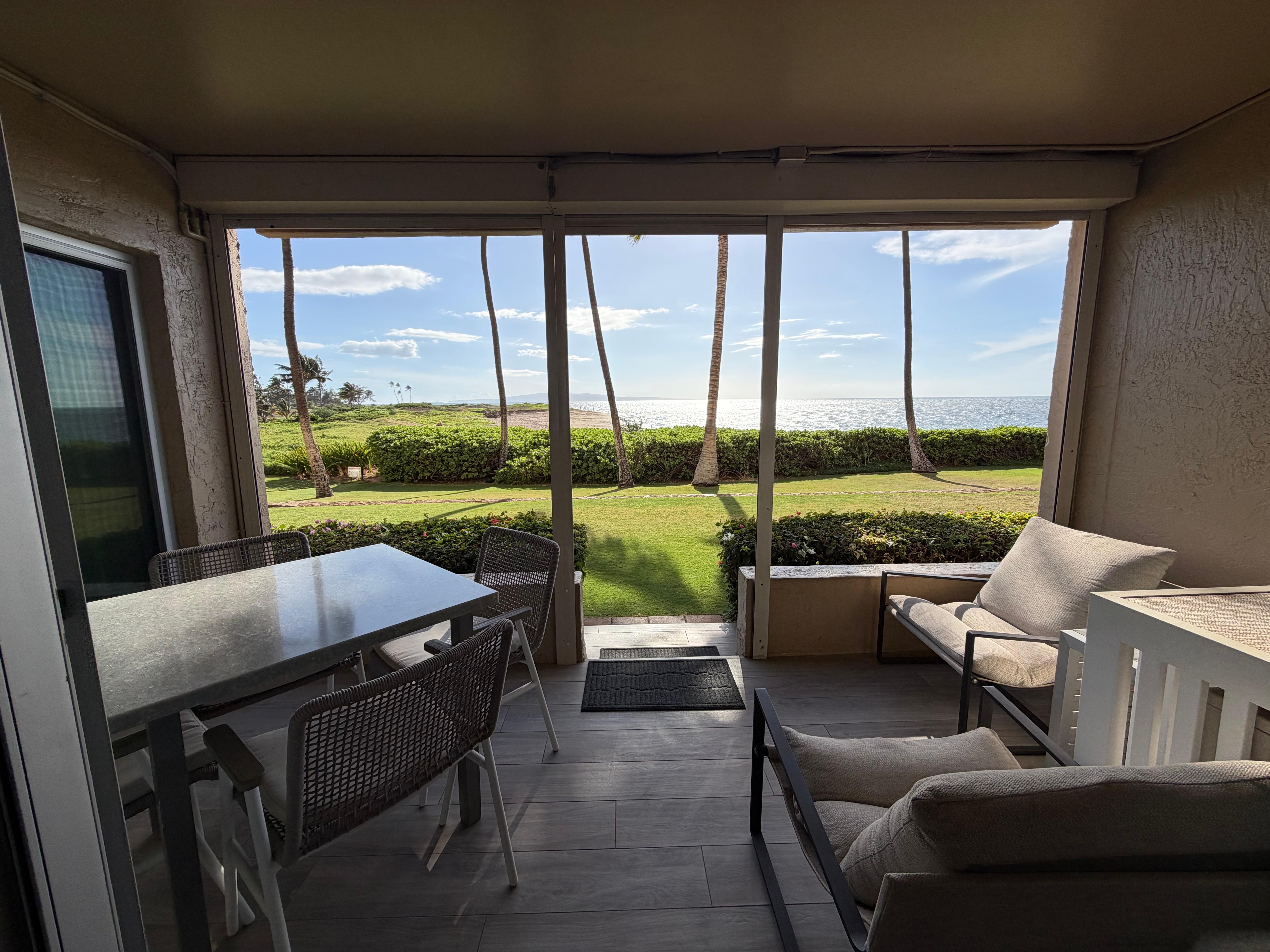 •Private Lanai: Steps from the oceanfront lawn, perfect for morning coffee, evening cocktails, and relaxing moments just a short stroll from the beach.