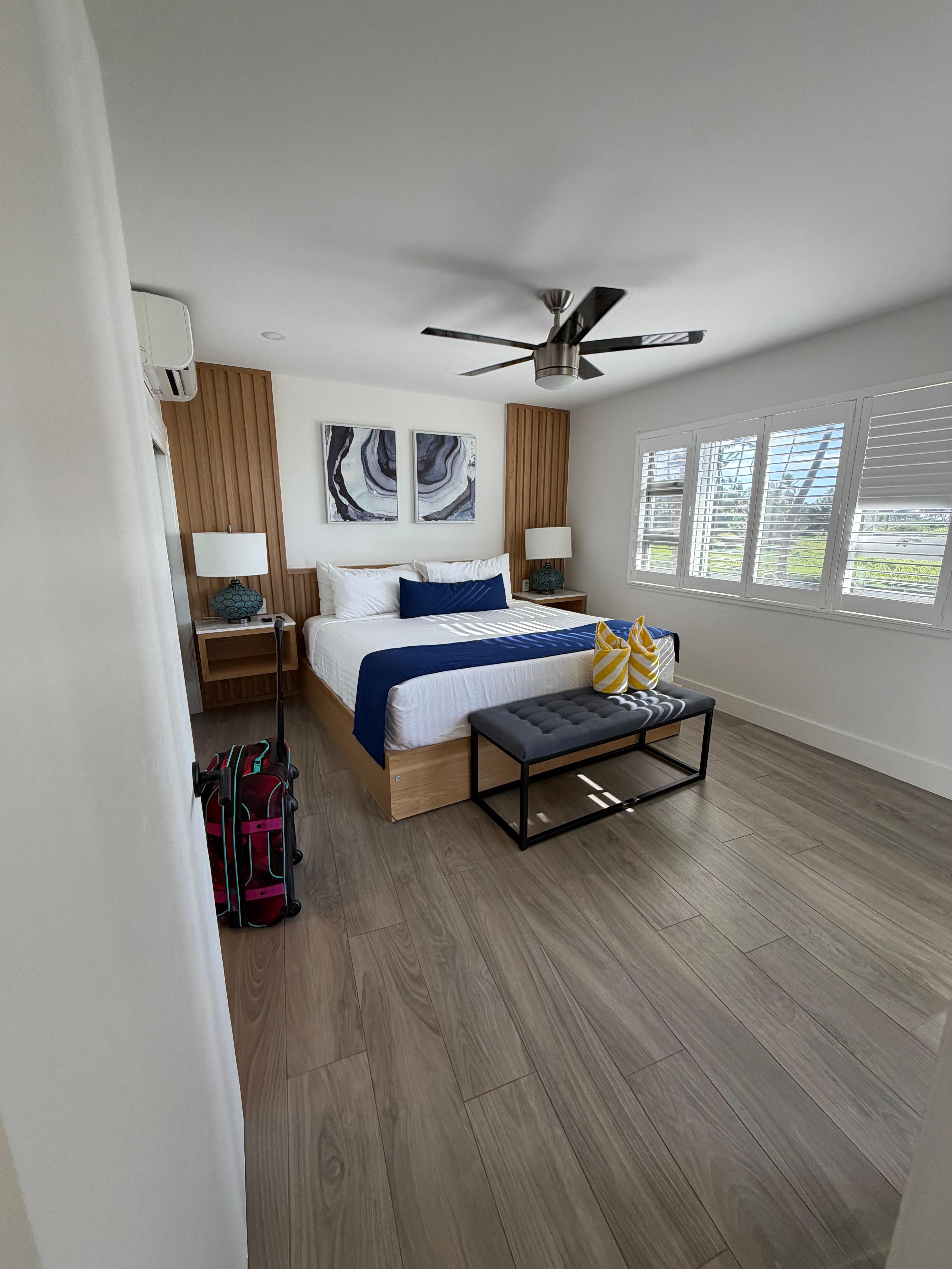 •Master Suite: Features a plush king bed, ceiling fan, and an en-suite bath for added privacy and convenience.