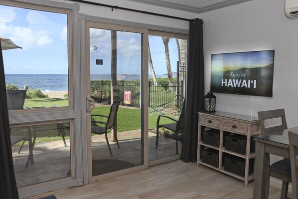 Aloha og velkommen til Kihei Sands Beachfront Condominiums Condo A9 i solfylte South Maui! Condo A9 har nydelig tre flis, fliser, ny stue møbler, oppusset bad og nye kjøkkenapparater. Vi har også nye Mitsubishi A / C'er for å holde deg kult og avslappet (hovedopphold og soverom).
