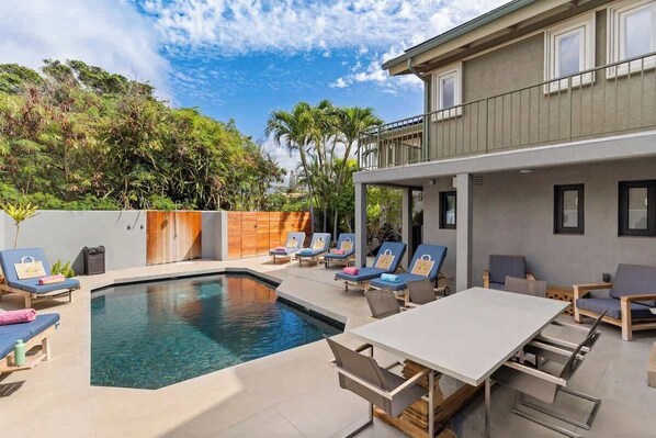 This villa is a private tropical oasis only 50 yards from beaches, snorkeling, and surfing. Minutes away from shops, restaurants, food trucks, playgrounds, tennis courts, and skate parks. All are within walking distance from our beautiful property.