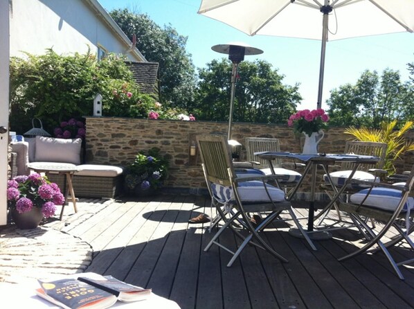 Imidlertid, hvis du ikke ønsker å dra langt fra hytta, er det nok ting å gjøre rundt eiendommen for å holde voksne og barn glade i flere dager: Slapp av på solsengene på den solfylte terrassen; Sitt på brygga med en kaffe eller et glass vin og se på barna leke i bekken, og hvis du er heldig, kan de bosatte kongefiskerne fiske mens tidevannet sakte kommer med å bringe det vennlige svanerparet. Ved lavvann er det mulig å gå en god avstand langs bekken på helvetesenget (unngå gjørme) og se muslingbedene og et stort utvalg av fugleliv som fôrer små krabber og skalldyr. Når solen gradvis trekker seg ned fra terrassen omtrent klokka 7. 30 går du til toppen av hagen hvor du finner benker og et bord og stoler med rikelig med terrassehage for barna å leke. Du kan se solen gå ned over horisonten klokka 9. 30 eller så i høyden av sommeren. Flytt deretter tilbake til terrassen foran, tenn på de rustikke pantile lampene og slapp av! Endelig er en robåt (4. 4 meter) tilgjengelig på forespørsel; ypperlig til å potte rundt på bekken ved høyvann.